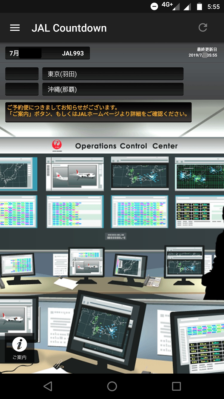 JGC専用カウンターに並んだものの、やはり数人待ちという状況で、手が空いている係員も見当たらず、悶々とした時間を過ごします。その間、カウントダウンアプリを確認すると見たことない画面、いや、一度どこかで見たような…