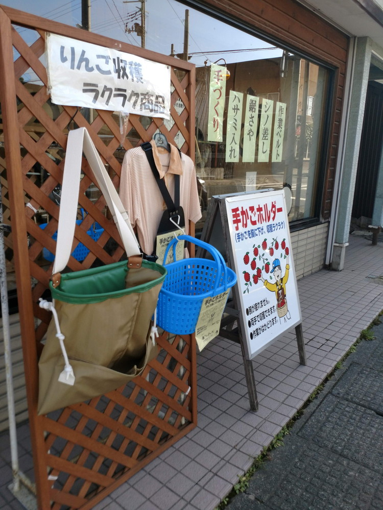 ▲町中のお店ではリンゴ農家向けの商品が売られていました。