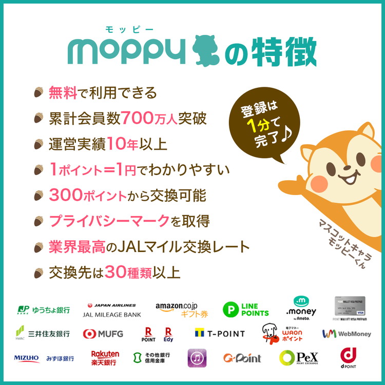 私はいくつかのポイントサイトに登録していますが、一番多く利用しているのがモッピーです。