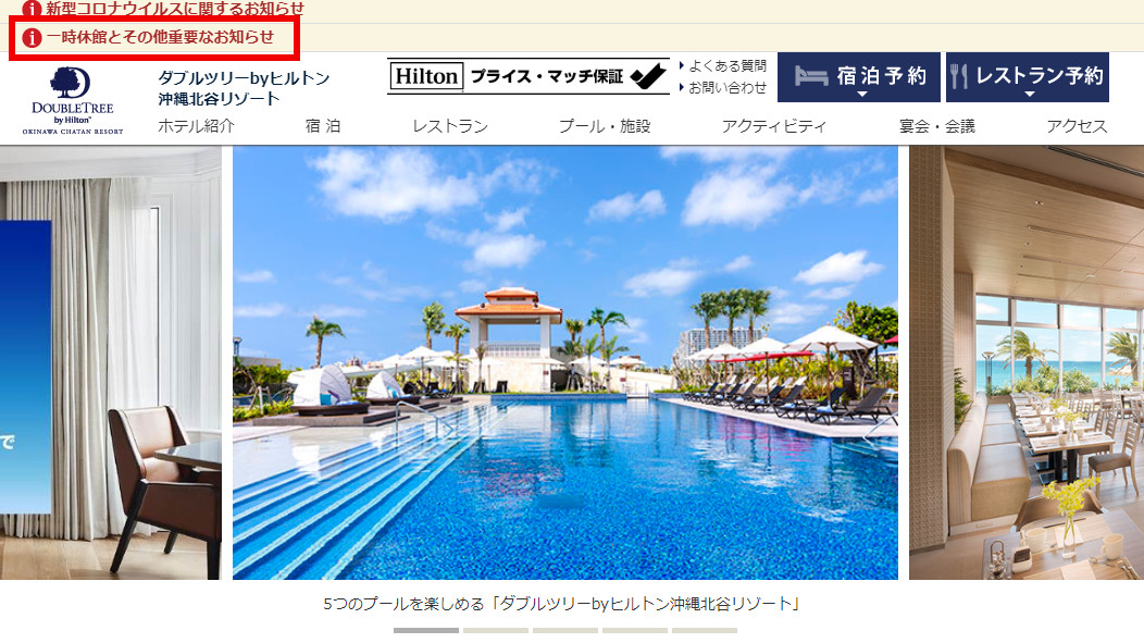 次に、このダブルツリーbyヒルトン沖縄北谷リゾートのホームページを見てみましょう。