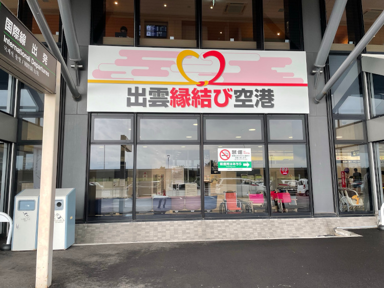 ▲愛称の出雲縁結び空港がデカデカと掲げられています。これは出雲大社が縁結びの神様であることが由来です。