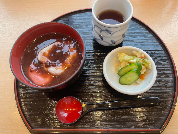 ▲食事といっても半端な時間だったため、甘味をいただくことに。出雲地方はぜんざい発祥の地ということで、空港でも食すことができます。