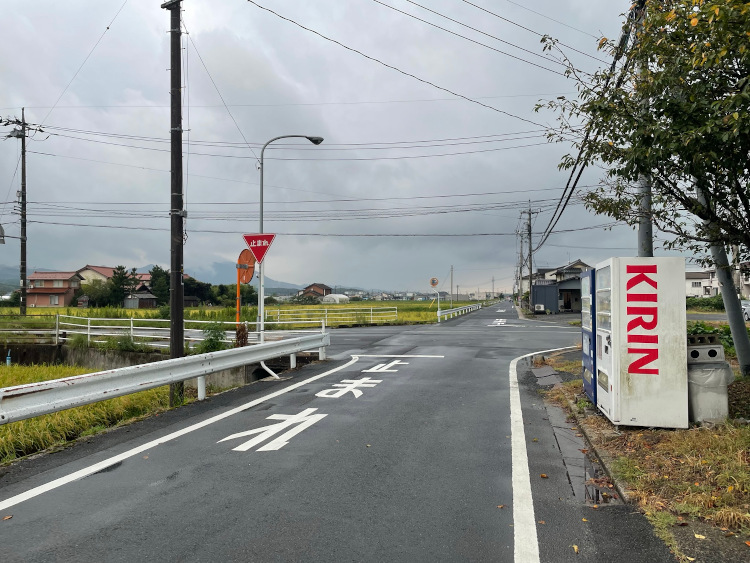 ▲しばらく直進したのち、この自販機のある交差点を左折します。