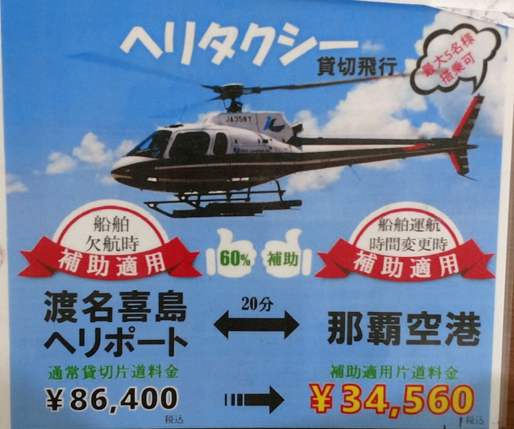 その日のうちに那覇経由で帰る予定だったため、唯一の代替手段であるヘリタクシーを利用することにしました。